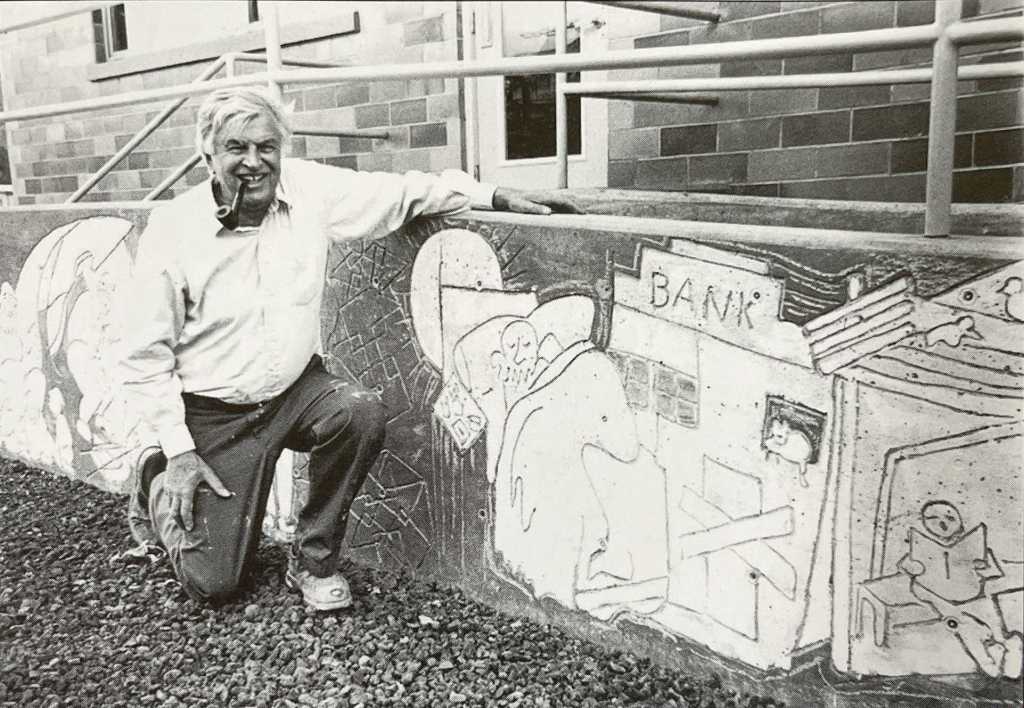 Richard Beyer with a portion of “The Precious Jewel” mural — Al Camp photo